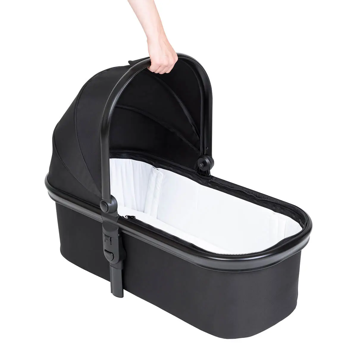 snug™ carrycot's UPF50 sun hood protects baby on the go & incorporates a handy carry handle, making transferring on&off the buggy easy.